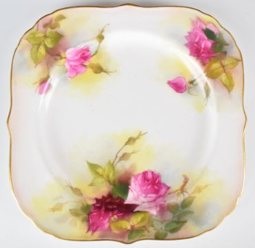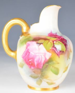 Royal Worcester cake plate, diameter 21cm and a flatback jug decorated with roses, height 11cm