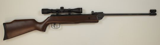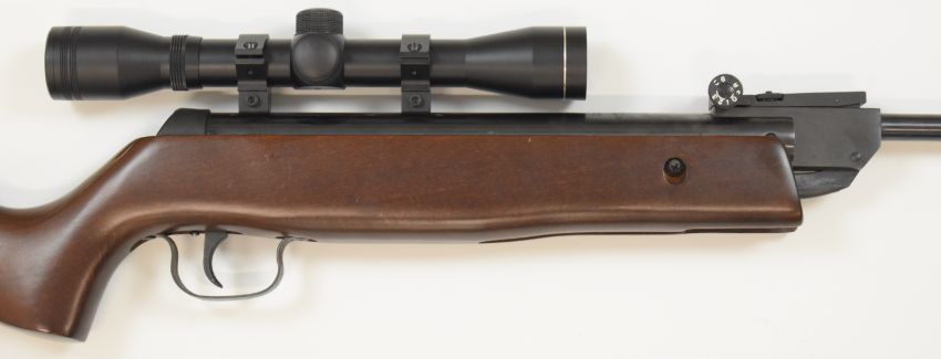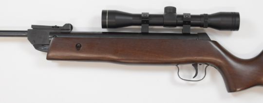 Norica Model 73 .22 air rifle with semi-pistol grip, adjustable sights and 4x32 scope, serial number 17336.