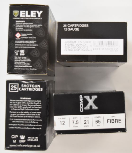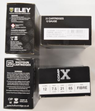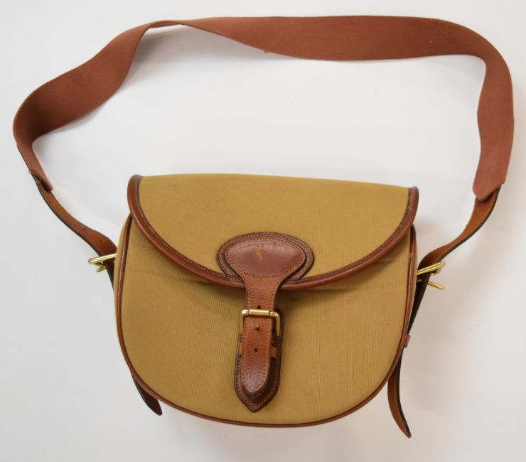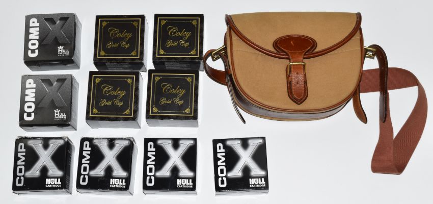 Two-hundred-and-fifty 12 bore Winchester Comp X and Eley Gold Trap shotgun cartridges, together with an Albion canvas and leather shotgun cartridge bag. PLEASE NOTE THAT A VALID RELEVANT FIREARMS/SHOTGUN CERTIFICATE IS REQUIRED TO HANDLE/PURCHASE THIS ITEM. We are not able to offer our usual postage service for this lot