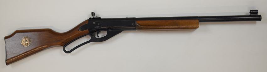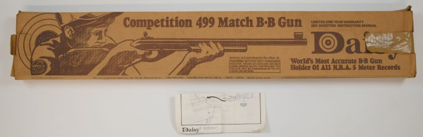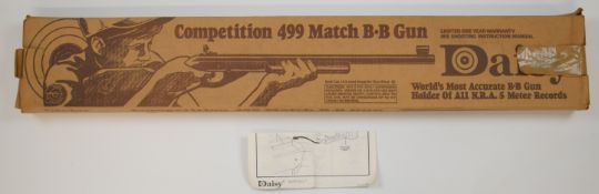 Daisy Competition 499 Match BB .177 Winchester style under-lever air rifle with 'Official Shooting Education BB Gun By Daisy' plaque inset to the stock, wooden stock and forend and adjustable peep-hole target sights, serial number 93G00649, in original box with related paperwork.