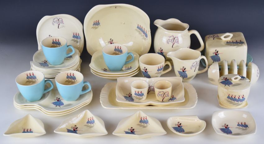 Beswick retro / mid century modern tea and decorative ware decorated in the Ballet pattern including a toast rack, cheese dish etc, approximately 35 pieces