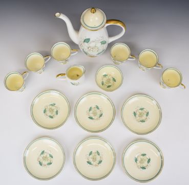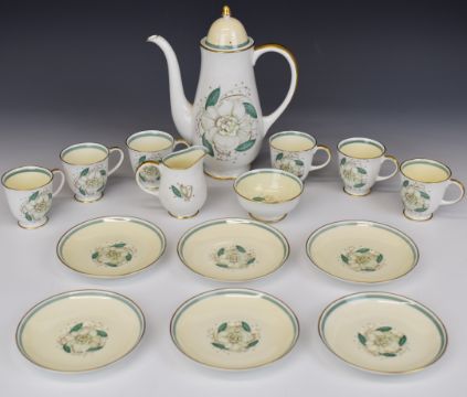 Susie Cooper tea set decorated in the Gardenia pattern, tallest 27cm, 15 pieces