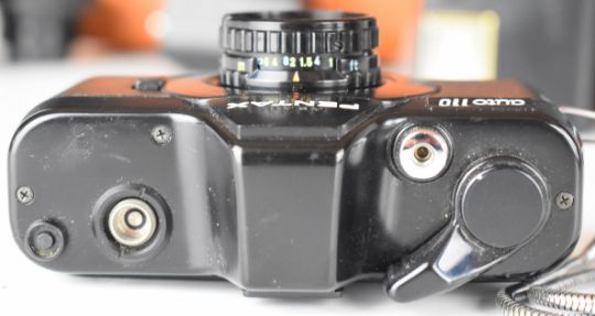 Pentax auto 110 miniature or spy camera outfit including 1:2.8 24mm, 18mm, 50mm and 70mm lenses, flash gun, winder and instruction manual