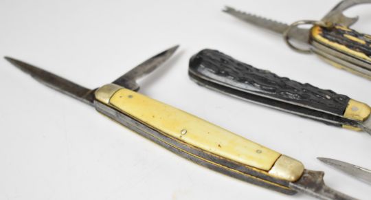 Seven pocket / folding knives including William Rogers, Richards, W Wilson & Sons and Rottgen, longest blade 56cm. PLEASE NOTE ALL BLADED ITEMS ARE SUBJECT TO OVER 18 CHECK ON COLLECTION OR DELIVERY