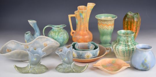 Collection of Beswick retro / Art Deco ware and drip glaze vases, dishes and novelty items, model numbers 1371, 177/2, 188, 848 etc, tallest 23cm