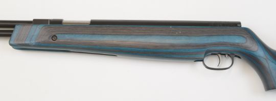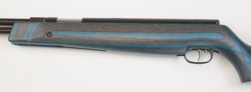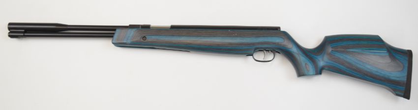 Weihrauch HW97K .177 underlever air rifle with blue laminated show wood stock, semi-pistol grip, raised cheek piece and adjustable trigger, serial number 2379932, with original tag.