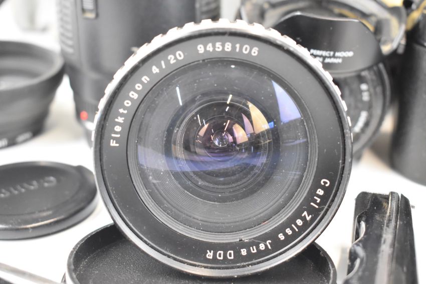 Canon EOS100 35mm SLR camera with Canon 70-210mm and 28-70mm and Sigma 1:2.8 24mm lenses, together with an Asahi Pentax 35mm SLR camera with 1:2/55, Zeiss 1:3.5 135mm, Meyer 35/50 and Zeiss Flektogon 4/20 lenses and a Paillard Bolex PH8 cine camera