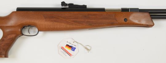Weihrauch HW97K .177 underlever air rifle with adjustable trigger, textured thumb-hole grip, raised cheek piece and adjustable sights, serial number 2379940, with original tag.