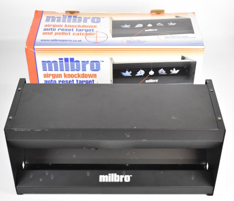 Milbro air rifle or pistol knockdown auto reset target and pellet catcher, in original box.