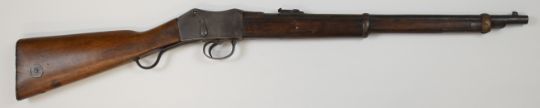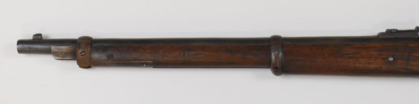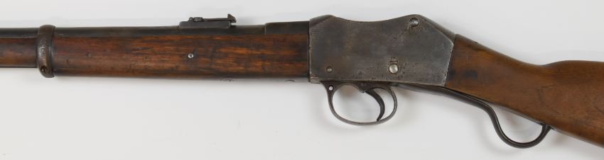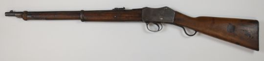 BSA Martini-Henry .577/450 underlever cavalry carbine rifle with lock stamped ' VR BSA & M Co 1889 JL 2' below crown, adjustable pop-up ladder sights, brass disc inset to the stock stamped '3 1894 V.1D.T.A. 101', and 21 inch rifled barrel, overall length 96cm.