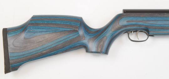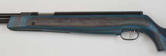 Weihrauch HW97K .177 underlever air rifle with blue laminated show wood stock, semi-pistol grip, raised cheek piece and adjustable trigger, serial number 2378856, with original tag.