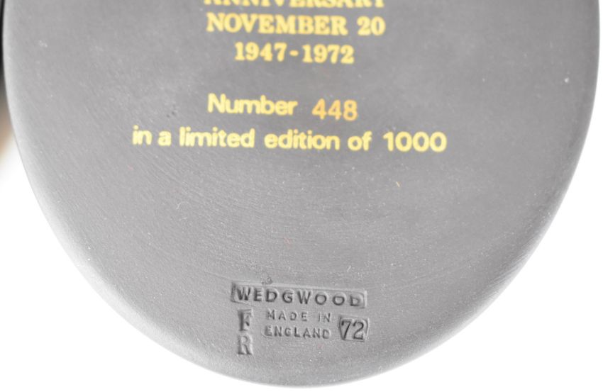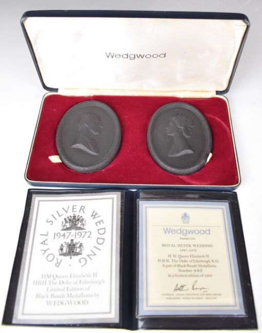 Wedgwood pair of limited edition black basalt busts of Queen Elizabeth II and Prince Philip, height 11cm, cased with certificate