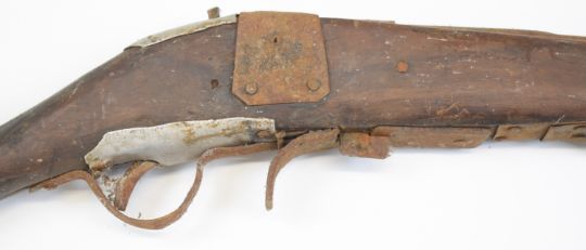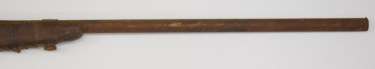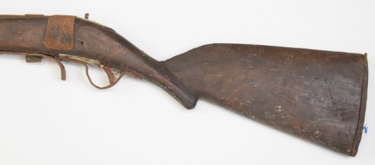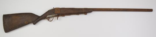 Percussion hammer action training rifle with semi-pistol grip, wrist marked 'C 19' and 29 inch barrel, overall length 118cm.