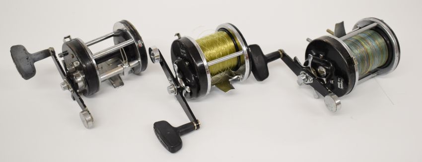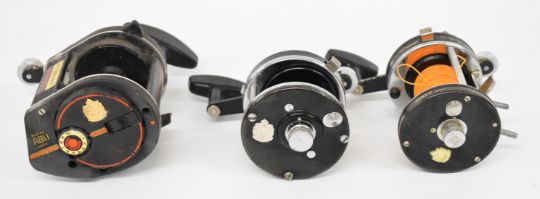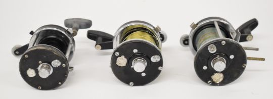 A collection of vintage Abu Ambassadeur multiplier fishing reels, various model numbers including 9000C, two 10,000CA, two 8000C, Ultra Mag XL VI etc