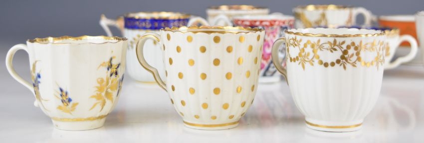 Collection of mostly first period Worcester coffee cans, teacups and Flight Barr and Barr cups