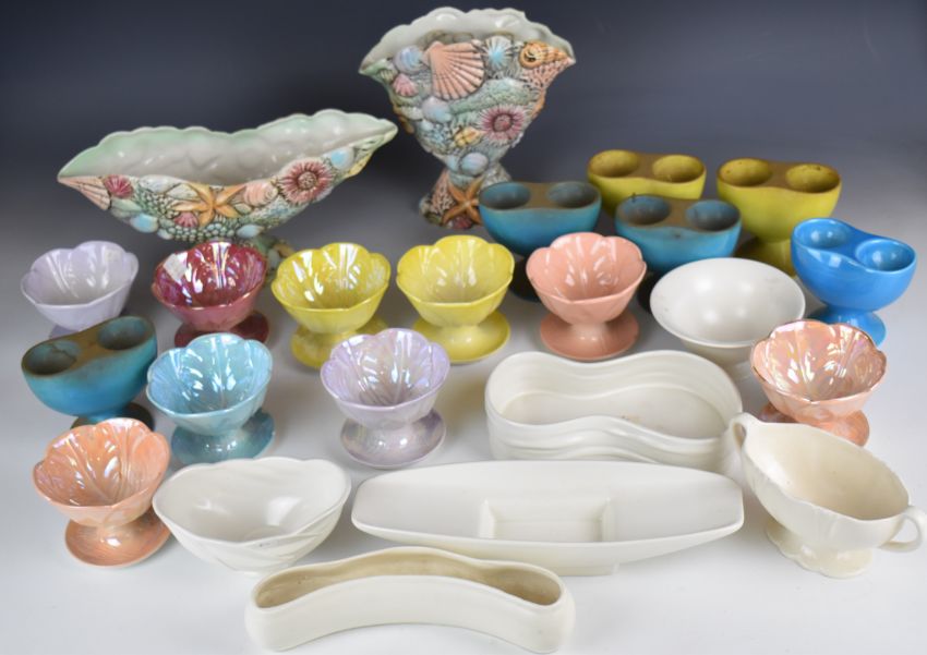 Beswick retro / novelty ware including a quantity of double egg cups, lustre glazed grapefruit / sundae dishes and decorative ware, tallest 18cm