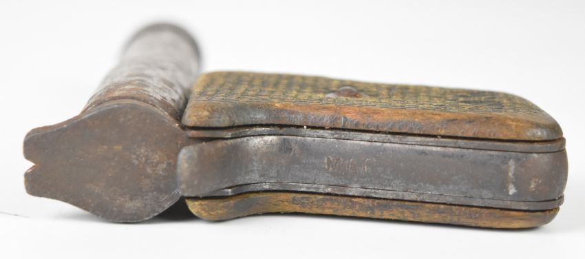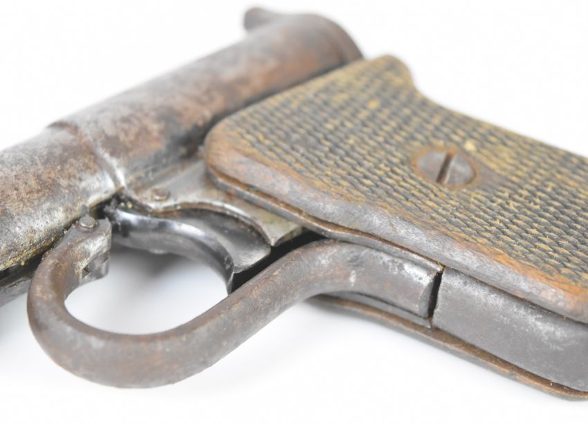 Tell II .177 air pistol with chequered wooden grips, barrel marked 'D.R.G.M. Tell II D.R.P' and fixed sights, NVSN
