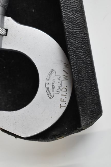 Two Mitutoyo micrometer heads, one 0-2 inch the other 0-25mm, Moore & Wright 0-1 inch micrometer and a vernier caliper
