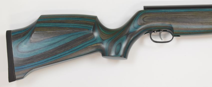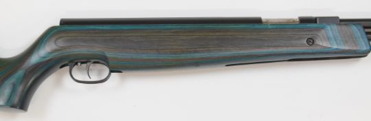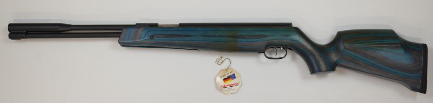 Weihrauch HW97K .177 underlever air rifle with blue laminated show wood stock, semi-pistol grip, raised cheek piece and adjustable trigger, serial number 2379888, with original tag.
