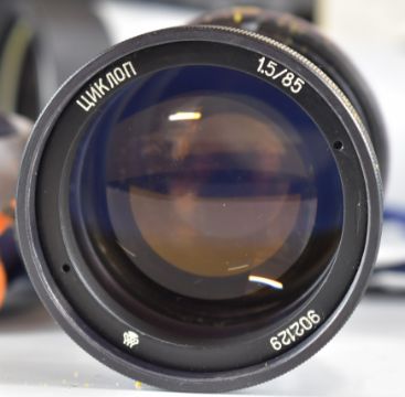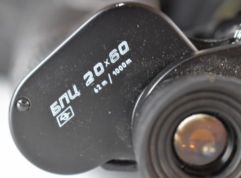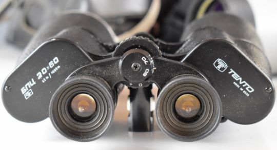 Russian Cyclops spotting or similar scope, Nomo T-80 spotting scope, Zenitsa ZT8-24x40 scope and a pair of Tento 20x60 binoculars
