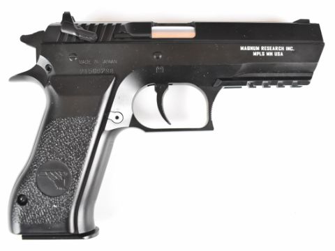 Magnum Research Baby Desert Eagle 6mm COair pistol with monogrammed and textured grips, multi-shot magazine and fixed sights, serial number 21506298, in original box.