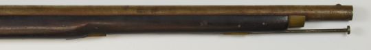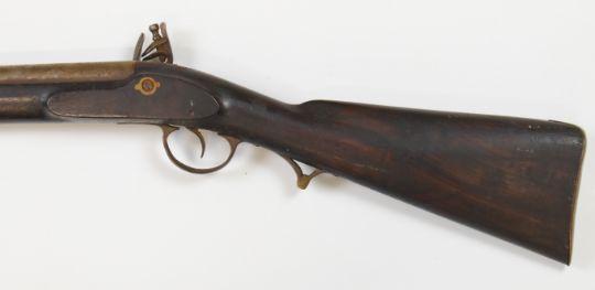 Flintlock cavalry carbine with stock stamped '381', brass trigger guard, butt plate and mounts and 24 inch smooth bored barrel, overall length 100cm.