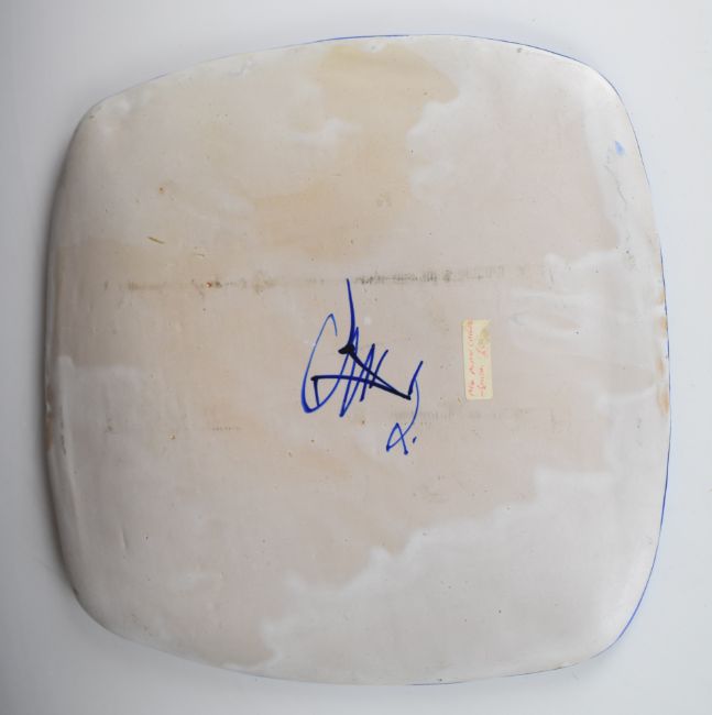Alan Caiger Smith (1930-2020) studio pottery charger decorated with two cockerels, signed verso, 33 x 33cm