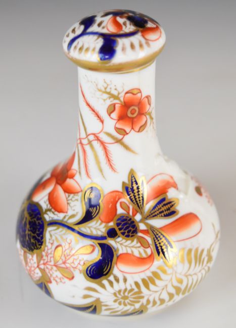 19thC Spode covered scent / perfume bottle decorated in the Imari pattern, height 11cm