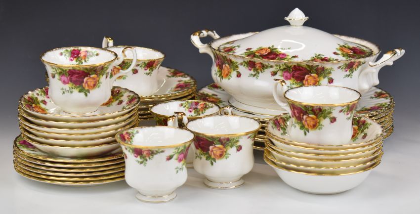 Royal Albert dinner and tea ware decorated in the Old Country Roses pattern includes tureens, approximately 37 pieces