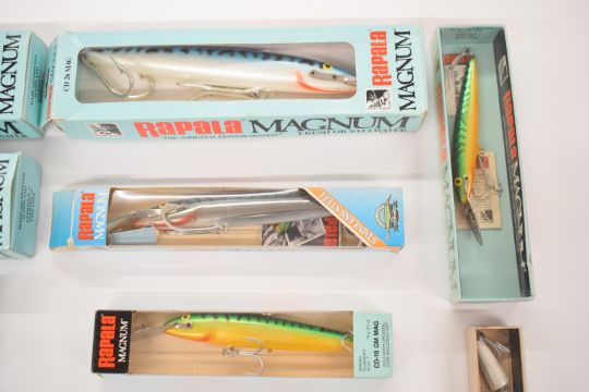 Thirteen large Rapala Magnum sea / big game fishing lures including three very large CD 26 Mag, all boxed (one lid missing)