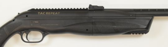 ASG TAC Repeat .177 COair rifle with textured semi-pistol grip and forend, raised cheek piece to the composite skeleton stock, adjustable sights and scope rail, serial number 18A40898, in original box.