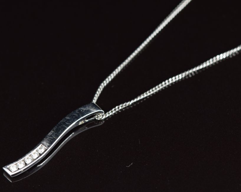 A 9ct white gold pendant set with cubic zirconia, on 9k white gold chain, in box, chain 40cm, pendant 2.8cm, 3.2g