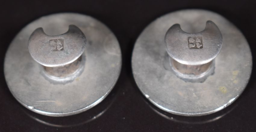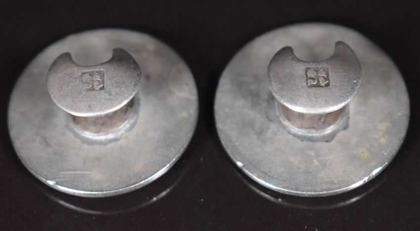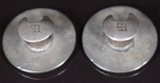 A pair of Japanese Meiji period silver buttons with embossed heron and foliage decoration, 18.6g