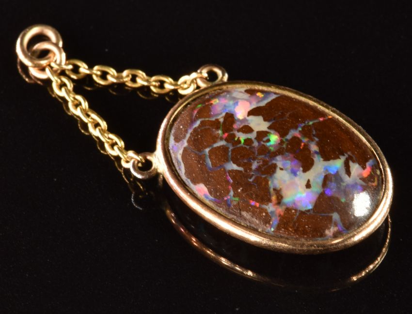 A 9ct gold pendant set with an opal boulder, 2.5g, 3 x 1.4cm