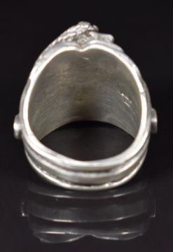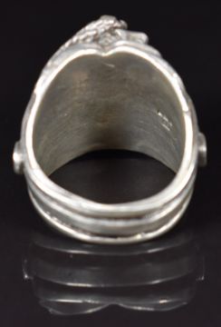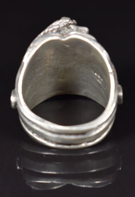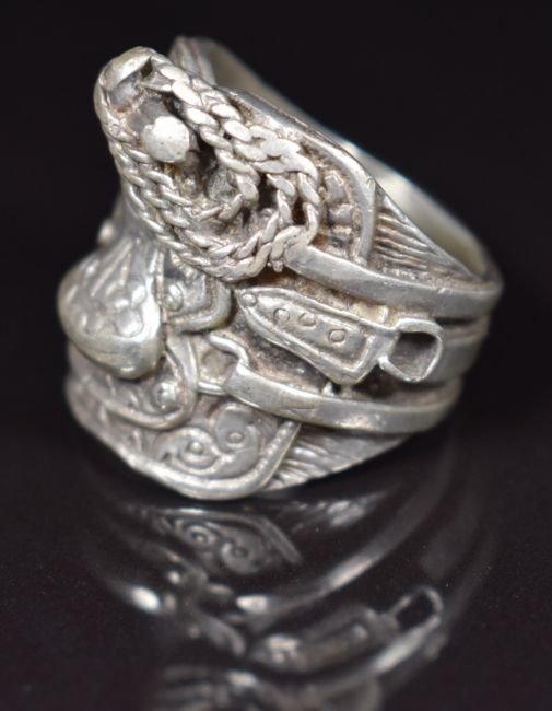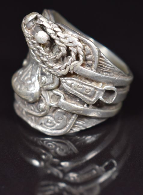 A hallmarked silver ring in the form of a saddle, 26g, size X