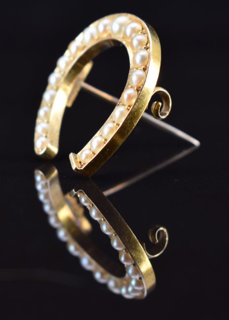 Victorian / Edwardian 15ct gold horseshoe brooch set with split pearls, 4g, 2.3 x 2.5cm