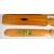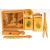 Satinwood treen items, most painted with flowers, comprising glove stretchers, page turner, trinket pot, aide memoire, card case, hone and thimble case, together with a wooden micro mosaic picture of a likely continental street scene, 15 x 18cm