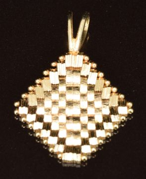 A 14k gold pendant made up of textured links in a diamond shape, 3.1g, 2.8 x 2cm