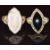 Two 9ct gold Hungarian rings, one set with a coral cameo and the other onyx and paste