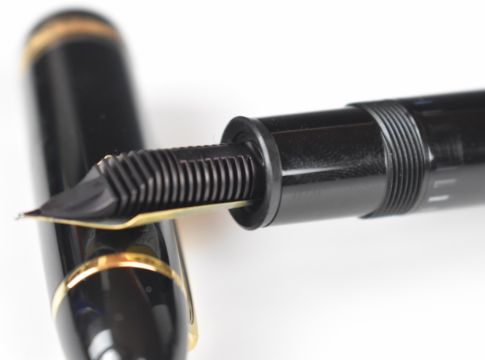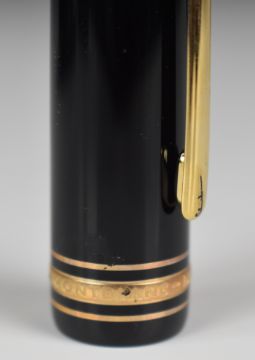 Montblanc Meisterstuck No 149 fountain pen with back resin barrel and cap, gold plated fittings and 18ct gold 4810 nib, in original fitted box.
