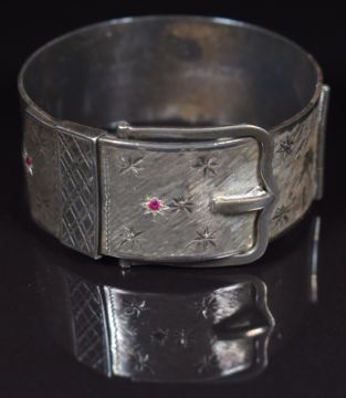 Hallmarked silver bangle with a brushed finish and star decoration, Birmingham 1962, 70g