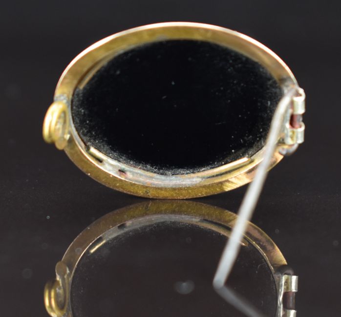 Victorian 9ct gold brooch set with a banded agate cabochon, 6.1g, 2.8 x 2.2cm