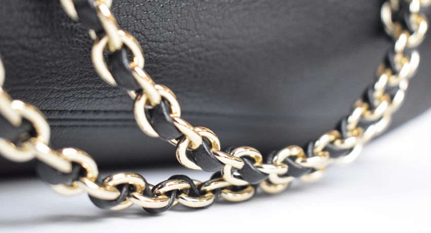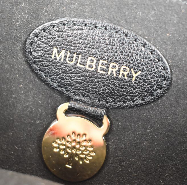 Mulberry Lily medium shoulder bag in black grained leather, with chain strap and gold hardware, 32 x 20cm