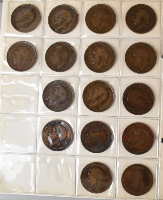 Album of mainly British coinage, including approximately 250g of pre 1947 silver coinage including Victorian, George IV, likely Edward I hammered coin, brass 3d pieces, cartwheel penny, Victorian and later pennies, halfpennies and farthings and a quantity of world coinage including French, American and Swiss