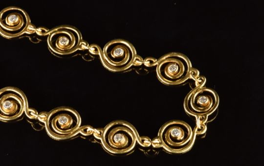 An 18ct gold bracelet made up of eleven spiral links, each set with a diamond of approximately 0.04ct, 13.5g, 21cm