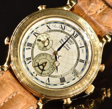 Three gentleman's wristwatches, two Seiko comprising World Timer Chronograph ref. 6M15-9000 and Quartz Chronograph ref. 7T32-6F00, and a Rotary Khalif ref. 4622, all on leather straps.