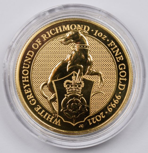 2021 Elizabeth II £100 1oz fine gold 999.9 White Greyhound of Richmond gold coin