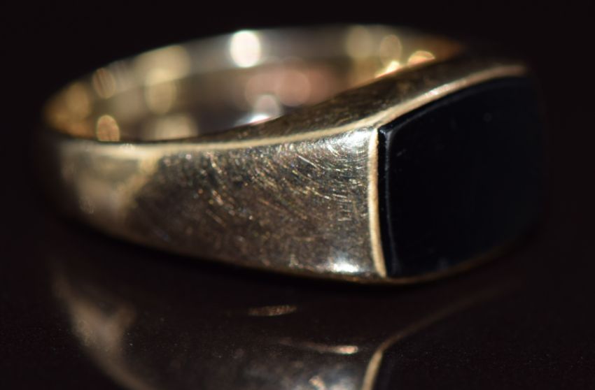 A 9ct gold signet ring set with onyx, 3.2g, size O