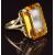 A 9ct gold ring set with an emerald cut synthetic yellow sapphire of approximately 30ct, 11.3g, size P