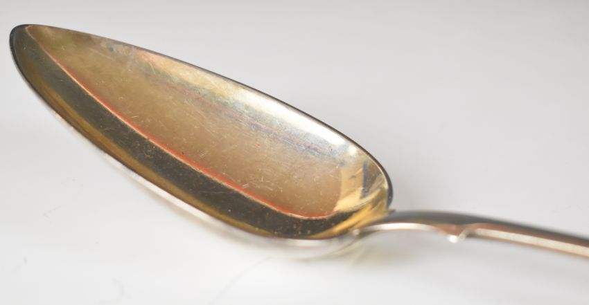 Georgian hallmarked silver fiddle pattern basting spoon, London 1811, maker Stephen Adams II, length 31.5cm, weight 125g